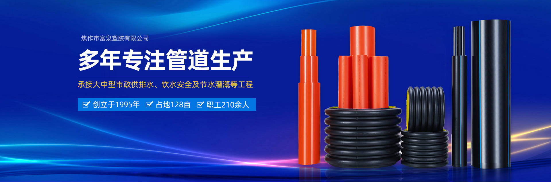 - 焦作市富泉塑膠有限公司,創(chuàng)立于1995年,是一家集研發(fā)、設計、生產、銷售為一體的大型管材企業(yè)。公司位于太極故里、黃河之濱一一河南焦作溫縣。公司占地128畝,現(xiàn)有職工210余人,其中具有中技術職稱的19人。生產、檢驗設備58臺(套),包括PVC實壁管生產線11套、PE實壁管生產線12套、HDPE雙壁波紋管生產線6套、PVC雙壁波紋管生產線5套,檢驗設備14臺(套)。主要產品有:Φ20mm-630mm、各種壓力規(guī)格的PVCU、PVC-M、PE給水管材,PVC-U節(jié)水灌溉管材,HDPE燃氣和礦用管材,DN200-800mm的HDPE、PVC雙壁波紋管及各種噴灌、滴灌工程材料。承接大中型市政供排水、飲水安全及節(jié)水灌溉等工程?! 「蝗苣z公司重視產品的質量、安全、環(huán)保和節(jié)能,在同行業(yè)中率先完成了“新華節(jié)水產品認證”,全方面通過ISO9001:2008國際質量管理體系、IS014001:2004環(huán)境管理體系和OHSAS18001職業(yè)健康安全管理體系的一體化導入,并建立起規(guī)范的現(xiàn)代企業(yè)管理體系。公司以“質量”為先導,采用質量跟蹤、多環(huán)節(jié)把關的方法,組建具有行業(yè)水準的企業(yè)技術檢測中心,常年委托水利部節(jié)水灌溉設備檢測中心、河南省產品質量監(jiān)督檢驗院對產品跟蹤檢測,并由中國人民保險公司承保產品質量。公司連續(xù)多年被河南省水利廳確定為“安全飲水設備、節(jié)水灌溉設備”定點生產企業(yè),并獲得“中國名優(yōu)產品”“質量、服務、信譽AAA企業(yè)”“河南省**產品”“河南省水利企業(yè)”“河南省守合同、重信用企業(yè)”等榮譽稱號?! 「蝗苣z公司堅持“用戶為上”的服務理念,長期以來,全方面關注客戶價值,不斷提升服務水平。服務隊伍常年為客戶的產品設計、施工、安裝提供合理的方案和全程細致、周到、**、快捷的技術服務。公司自成立以來,一直堅持以人為本的宗旨,塑造企業(yè)形象,并致力于新產品的開發(fā),憑借雄厚的技術開發(fā)能力,先進的工藝制造流程,嚴格的質量管理保證體系,優(yōu)良的售后服務網絡,已成為河南省大的飲水、灌溉及排水管材設備制造商。產品暢銷全國,而且還以公司雄厚的綜合實力在業(yè)界中占據著重要的地位。
